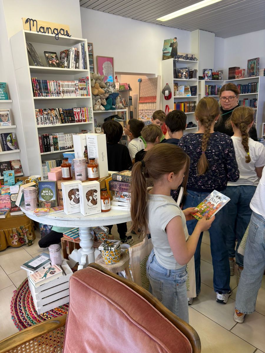Jede 4. Klasse und unsere jahrgangskombinierten Klassen 3/4 wurden von Frau Zahnweh vor der Buchhandlung IsarBuch herzlich empfangen und zum Stöbern, Schmökern und Lesen eingeladen. So konnten unsere Grundschülerinnen und Grundschüler die Neuerscheinungen ihrer Lieblingsbücher entdecken sowie die Vielfalt der Buchhandlung kennenlernen – ein Besuch, der Lust auf mehr machte und den einen oder anderen Lesewunsch weckte.
