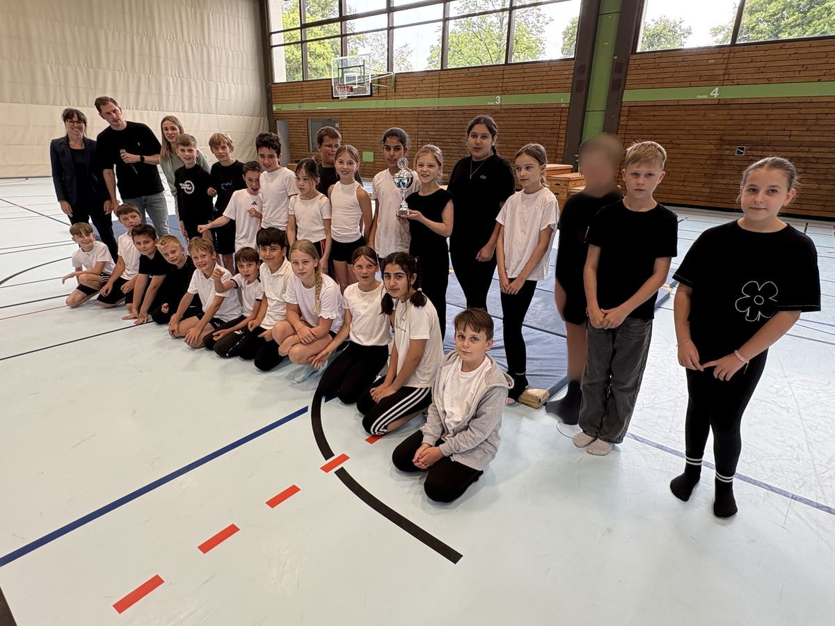 Am Mittwoch, den 30. Juli 2025, fand in der Realschulturnhalle die feierliche Verabschiedung unserer vierten Klassen statt. Alle Schülerinnen und Schüler und zahlreiche Eltern waren gekommen. Eröffnet wurde das Fest mit einem feierlichen Einlauf der Viertklässlerinnen und Viertklässler in die Turnhalle und der Begrüßungs- und Abschiedsrede von Frau Dr. Kümpel, der Schulleiterin. Anschließend wurden die Gewinner des Mathematik-Känguru-Wettbewerbs und die Gewinner des Sportfestes geehrt.