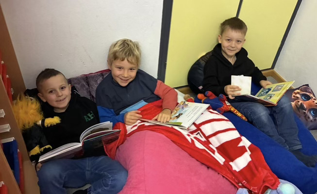 Auch in den Klassenräumen wurde es an diesem Tag besonders gemütlich: Die Kinder lasen im Klassenverband, eingekuschelt in Decken und Kissen, und natürlich durfte auch das Lieblingskuscheltier nicht fehlen. So entstand eine warme, fröhliche Atmosphäre, in der das Lesen zu einem gemeinsamen Erlebnis wurde.