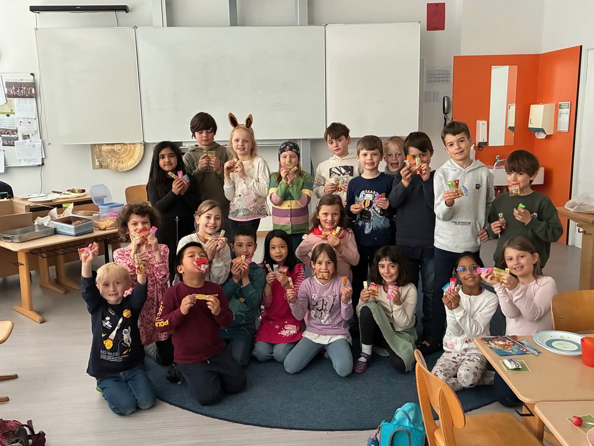 Am Freitag vor den Osterferien, am 11. April 2025, fanden in den Klassen der Grundschule am Kirchplatz zahlreiche Osterfeiern statt. Die Kinder pflanzten zuvor schon Kresse an, schnitten Gemüse und Obst und deckten gemeinsam reichhaltige und gesunde Ostertische. Auch zuhause waren unsere Schülerinnen und Schüler schon mit ihren Eltern fleißig und bereiteten allerlei Osterköstlichkeiten für das Osterfrühstück zu. Unter anderem wurden kreatives Ostergebäck und Ostertorten gebacken und verziert.